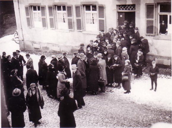WARTESCHLANGE VOR ABSTIMMUNGSLOKAL IN DER THOLEYER STRAßE