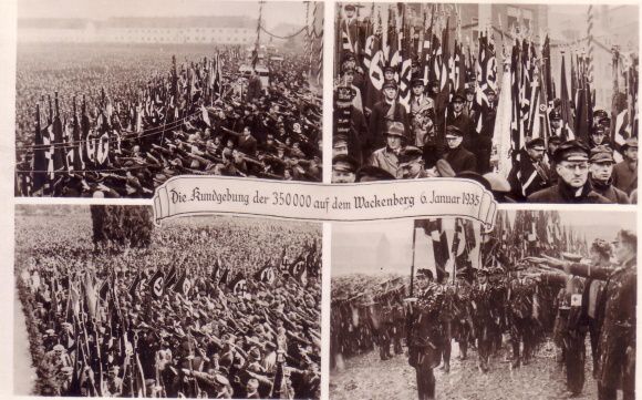 POSTKARTE: KUNDGEBUNG DER DEUTSCHEN FRONT AM 6. JANUAR 1934 AUF DEM SAARBRÜCKER WACKENBERG