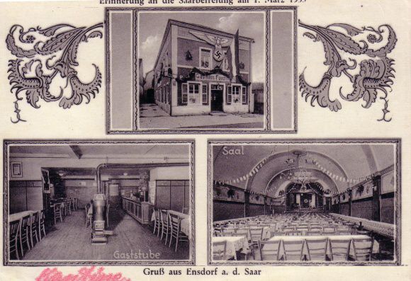 SONDERPOSTKARTE ZUR WIEDERANGLIEDERUNG AM 1. MÄRZ 1935 AUS ENSDORF